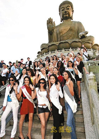 一班佳麗到達(dá)大嶼山寶蓮寺后,顯得很興奮,更爭取拍照留念機會,引來大批旅客圍觀。大會安排十位保安人員維持秩序。