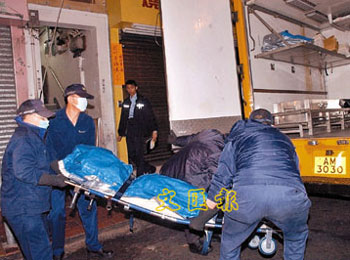 荃灣新村街被殺鳳姐尸體,由仵工送往殮房。(圖片來源:文匯報)