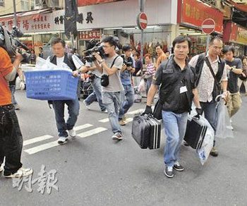 特區(qū)政府化驗師及鑒證科人員23日晨到兇案現(xiàn)場及大廈梯間噴上化學顯影劑,并利用黑色膠布遮蓋化學劑,待24日重返現(xiàn)場套取指模。而大批機動部隊警員23日晚手持相信是死者的照片,在大廈及附近商戶進行問卷調(diào)查,主要是詢問街坊近日有否見過相中女事主出入單位及與什么人一起。