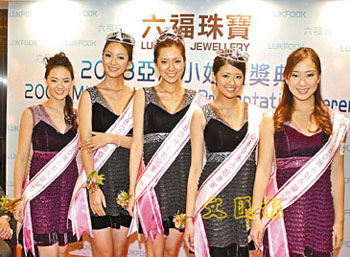 中新網(wǎng)12月11日電 據(jù)香港《文匯報(bào)》報(bào)道,五位新鮮“出爐”的亞洲小姐:冠軍姚佳雯、亞軍顏?zhàn)臃、季軍賴琳恩及兩位友誼小姐姚鳳鳳與林淑蓉,10日到香港北角珠寶首飾贊助商門巿領(lǐng)獎(jiǎng)。