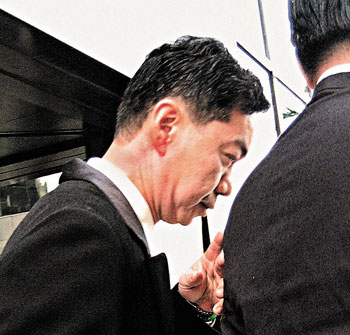 被告30日身穿彩色大格圖案的外套出庭應訊。裁判官得悉他曾因以虛假借口促致他人作非法性行為被判囚,不禁質問被告:“你又?”被告反駁稱:“誤會,上次單案我都上到終審庭!辈门泄倭⒓丛儐柹显V結果,被告低聲道:“駁回!