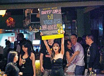 金融海嘯令香港酒吧生意一落千丈,美國軍艦這次訪港,預(yù)計會帶旺尖沙咀、灣仔及銅鑼灣一帶的消費,特別為區(qū)內(nèi)的酒吧帶來“及時雨”。不少酒吧東主得悉有大批美軍抵港,如久旱逢甘露,有酒吧更在門外掛上美國國旗作招徠,而大批衣著性感女郎,比平時更早“開工”,未及黃昏已經(jīng)在街頭向途經(jīng)大兵拋媚眼。