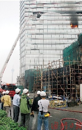 5日下午4時許,一號湖畔工地有工人發(fā)現(xiàn)酒店9樓有房間著火冒煙,立即報警。在消防未到達(dá)前,在該樓層工作的20多名工人立即逃走。大火產(chǎn)生的大量濃煙封鎖大樓梯間,并涌上更高的樓層,9樓以上工作的172名工人無法逃出,只有在25樓和40樓的防火層暫避,紛紛戴上口罩和用毛巾掩面,以防吸入濃煙。