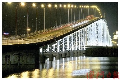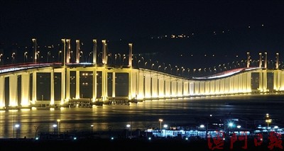 中新網(wǎng)3月16日電 據(jù)澳門(mén)日?qǐng)?bào)報(bào)道,澳門(mén)三條跨海大橋照明系統(tǒng)去年底在臺(tái)風(fēng)中受損及被“水老鼠”偷竊,有關(guān)單位耗資1800多萬(wàn)元進(jìn)行大規(guī)模維修。有關(guān)工程已全部完成,入夜后澳氹間海面再現(xiàn)“長(zhǎng)虹”。