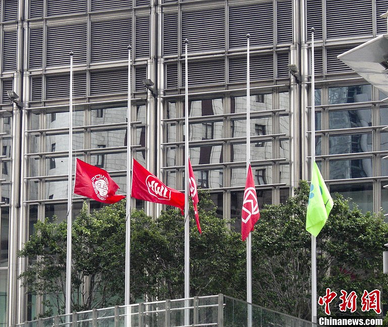 香港李嘉誠長江集團(tuán)中心下半旗致哀