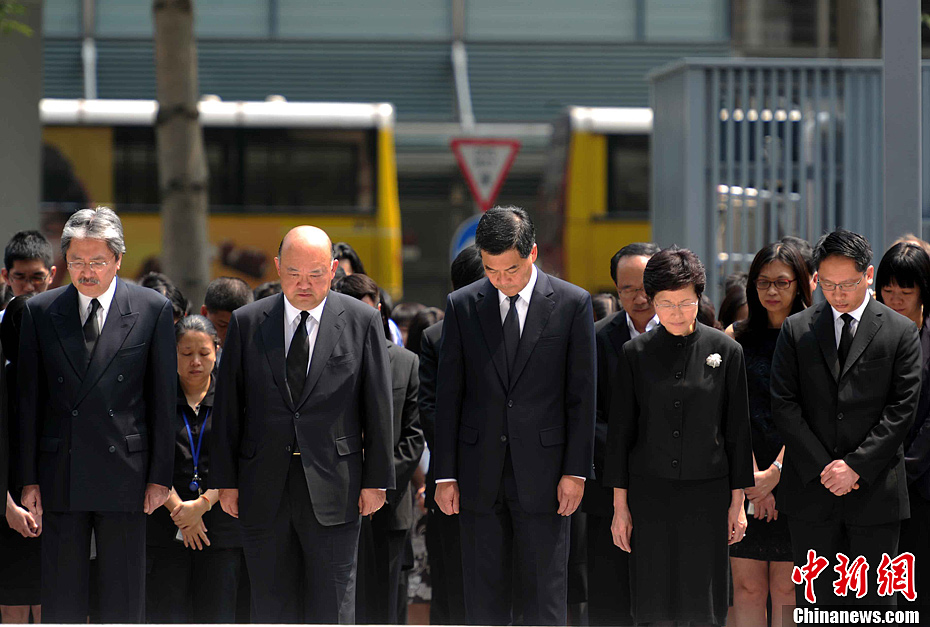 梁振英率官員為撞船事故遇難者默哀并簽吊唁冊