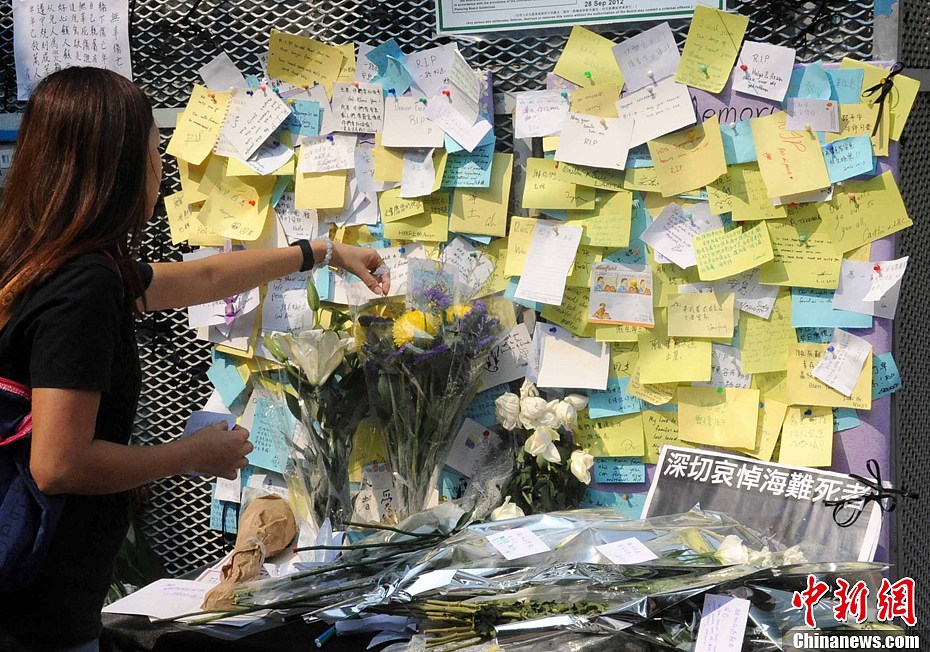 香港市民以不同形式向撞船事故中的遇難者致哀