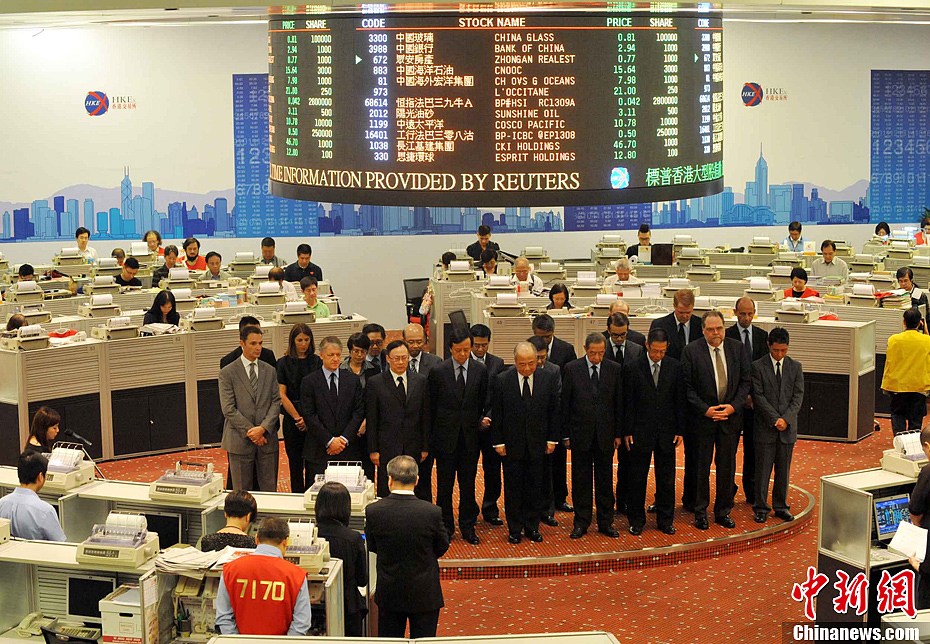 港交所主席周松崗等在港交所場內(nèi)默哀