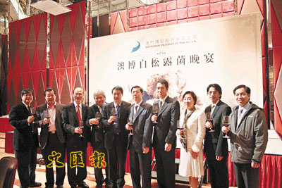 據(jù)香港文匯報(bào)發(fā)自澳門的報(bào)道稱,早前于澳門新葡京酒店舉行之“世紀(jì)白松露菌”國(guó)際拍賣會(huì),全球最大之白松露菌最后由澳門博彩股份有限公司行政總裁何鴻燊以33萬(wàn)美元投得。為了讓各方的賓客一嘗“世紀(jì)白松露菌”的神奇美味,澳博在新葡京宴會(huì)廳筵開(kāi)16席,將重金投得的白松露菌制成美味佳肴,款待來(lái)自各地的嘉賓好友,香港文匯報(bào)社長(zhǎng)張國(guó)良伉儷、副社長(zhǎng)韓力也成為座上客。