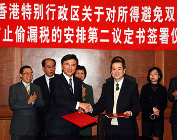 香港財(cái)經(jīng)事務(wù)及庫(kù)務(wù)局局長(zhǎng)陳家強(qiáng)30日在北京,與國(guó)家稅務(wù)總局副局長(zhǎng)王力簽訂《第二議定書》。這是內(nèi)地與香港及其它地區(qū)簽訂全面性避免雙重征稅安排或協(xié)定后,首次就修訂安排或協(xié)議的條款簽訂議定書,對(duì)于將來落實(shí)執(zhí)行安排或協(xié)議具有重要意義。