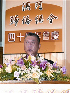 僑總成立四十年來,一直秉承愛國愛澳宗旨,凝聚廣大澳門歸僑,積極參與特區(qū)的社會服務,建樹良多。相信未來,該會定能與時并進,拓展會務,提升服務素質。特區(qū)政府將與僑總等各界社團,和廣大居民一起,為特區(qū)的可持續(xù)發(fā)展而努力奮進。何厚鏵誠邀更多海外僑胞投身澳門的建設,在“一國兩制”下盡情舒展才華。