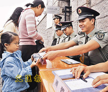 中新網(wǎng)4月28日電 據(jù)香港文匯報報道,五一勞動節(jié)當天,市民再次有機會與解放軍駐港部隊作近距離接觸。解放軍駐港部隊27日晨在添馬艦、石崗及槍會山軍營派發(fā)一共8000張門票,吸引大批市民到場輪候,部分人更在取得門券后再排隊領取。