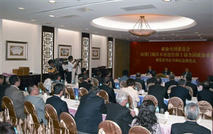 楊崇匯贊揚(yáng)澳區(qū)全國政協(xié)委員一向關(guān)心祖國的統(tǒng)一大業(yè)。很多委員利用自己的威望、影響和廣泛的社會(huì)聯(lián)系,在反“臺(tái)獨(dú)”、促統(tǒng)一的工作中發(fā)揮特有作用。