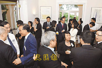 中新網(wǎng)6月6日電 據(jù)香港大公報(bào)報(bào)道,除了食物及衛(wèi)生局副局長(zhǎng)梁卓偉因事不在香港外,港府其余7名副局長(zhǎng)及9名政治助理5日在政務(wù)司司長(zhǎng)唐英年的帶領(lǐng)下,在政務(wù)司司長(zhǎng)官邸會(huì)見傳媒代表,是有關(guān)名單公布以來首次集體亮相。