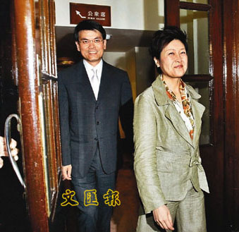 香港環(huán)境局副局長(zhǎng)潘潔10日首日上班,在環(huán)境局局長(zhǎng)邱騰華陪同下會(huì)見傳媒。(圖片來源:文匯報(bào))
