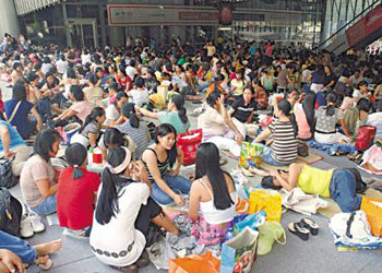 資料圖:每當(dāng)周末﹐菲傭們便三五人、幾十人集中在一起﹐聚餐、聊天﹐享受她們自己的生活。 中新社發(fā) 王麗南 攝