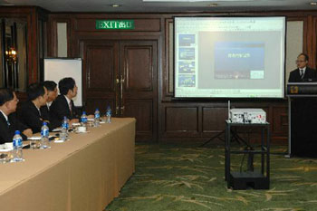 政制及內(nèi)地事務(wù)局副秘書長陳偉基(右)20日早向臺灣高雄市政府及旅游界參訪團簡介香港的旅游情況。(圖片來源:香港特區(qū)政府網(wǎng)站)