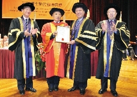 何厚鏵向李肇星頒授榮譽(yù)人文博士學(xué)位。(圖片來源:澳門日?qǐng)?bào))