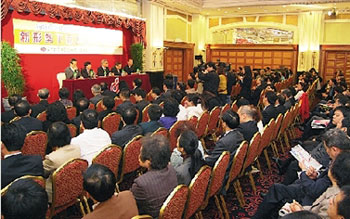 張銘清在講座上表示,今年3月下旬以來,臺灣局勢發(fā)生積極變化,兩岸關(guān)系發(fā)展出現(xiàn)難得的歷史機(jī)遇。主要表現(xiàn)在:一、大陸方面提出了新形勢下發(fā)展兩岸關(guān)系的重要主張,兩岸雙方開始出現(xiàn)良性互動;二、海協(xié)會與臺灣;鶗凇熬哦沧R”的基礎(chǔ)上恢復(fù)制度化協(xié)商,并取得實(shí)際成果;三、兩岸經(jīng)貿(mào)交流和人員往來取得新突破,為兩岸關(guān)系注入了穩(wěn)定的因素和發(fā)展的動力;四、臺灣體育健兒到北京參加奧運(yùn)會和殘奧會,兩岸同胞共圓中華民族百年奧運(yùn)夢想。
