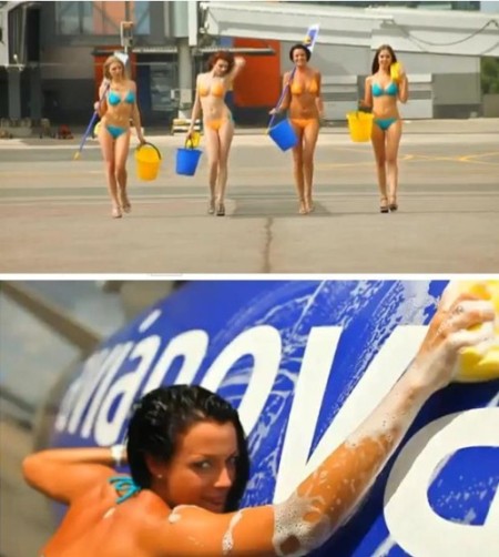中新網(wǎng)7月1日電 據(jù)臺(tái)灣“東森新聞網(wǎng)”6月30日?qǐng)?bào)道,俄羅斯航空公司Avianova為了吸引顧客,近日拍攝了一支兩分鐘的最新廣告,原本穿制服且形象端莊的4名空姐,以“風(fēng)騷“的姿態(tài)清洗飛機(jī),“敬業(yè)”地只穿三點(diǎn)式比基尼展現(xiàn)誘人“濕身”。這段影片上網(wǎng)之后,讓網(wǎng)友大喊“我要去俄羅斯”!