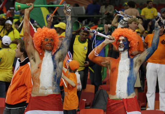 報(bào)道指出,世界杯誘發(fā)了許多球迷內(nèi)心深處的民族主義情愫。最可愛(ài)的民族主義可以被寫(xiě)在臉上:戴上夸張的假發(fā)、在臉上涂抹國(guó)旗的顏色。而荷蘭隊(duì)的勝利則讓南非眾多的荷蘭人后裔感到由衷的自豪。