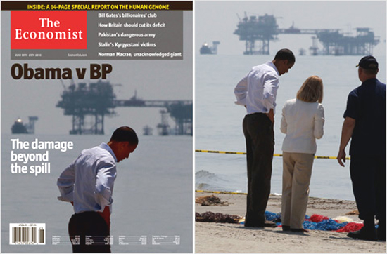 據(jù)美國《紐約時報》和《赫芬頓郵報》消息,5月28日出版的英國著名雜志《經(jīng)濟學人》,其封面故事是奧巴馬與墨西哥灣漏油事故。日前該雜志遭到美國方面的聲討和譴責,原因是雜志在封面圖片中對奧巴馬的一張照片進行了改動,使其看起來孤獨、無助。