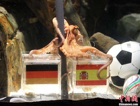二○○八年出生于英國(guó)的保羅,本屆世界杯至今,準(zhǔn)確預(yù)測(cè)德國(guó)隊(duì)參與的全部六場(chǎng)比賽的勝負(fù),包括分組賽負(fù)于塞爾維亞一仗,這使它在全球聲名大噪,被稱為“章魚大帝”或“八爪神算”,但卻可能為它招來殺身之禍。