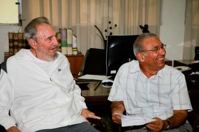 刊登在www.cubadebate.cu網(wǎng)站的照片顯示,83歲的卡斯特羅精神矍鑠面帶微笑,正與古巴科學(xué)研究中心的負(fù)責(zé)人交談。