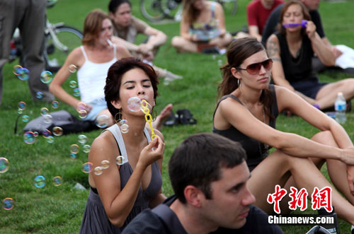 中新社多倫多7月17日電 (記者 賴海隆)數(shù)百名攜帶吹氣泡用品的抗議者17日正午時(shí)分在多倫多皇后公園里同時(shí)吹出氣泡,以表達(dá)對(duì)“氣泡警官”喬瑟夫斯憤怒,以及對(duì)G20峰會(huì)期間警方行為的公眾調(diào)查的支持。