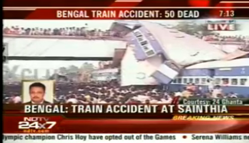 報(bào)道稱,事故發(fā)生在距離西孟加拉邦首府加爾各答以北200公里處的比爾普姆。事發(fā)時(shí),一列火車(chē)沖向停泊車(chē)站內(nèi)的另一列火車(chē)的尾部。