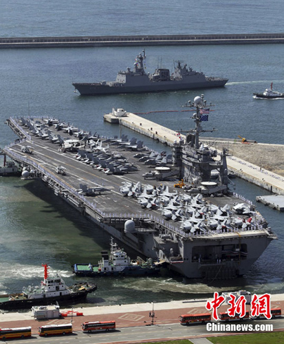中新網(wǎng)7月21日電 據(jù)韓聯(lián)社報道,美國海軍第7艦隊的航空母艦“喬治·華盛頓”號21日抵達釜山港,準備參加從25日開始的韓美聯(lián)合軍演。