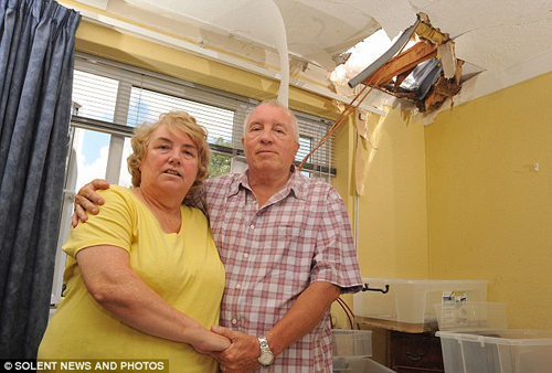 據(jù)稱,66歲的文斯•福特與妻子布倫達在半夜聽到一聲巨響,一開始以為是打雷,后來當福特打開另一間臥室的時候,他被天花板的窟窿和滿屋的狼籍驚呆了,窟窿下方正對著一張床上,幸好經(jīng)常來住的孫子不在,否則后果不堪設想。