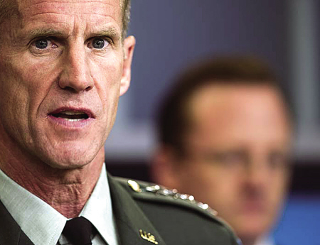麥克里斯特爾6月接受美國(guó)《滾石》雜志采訪時(shí)質(zhì)疑貝拉克·奧巴馬上臺(tái)后推行的阿富汗戰(zhàn)略,直接批評(píng)副總統(tǒng)約瑟夫·拜登和美國(guó)駐阿大使卡爾·艾肯伯里等政府高官,隨后遭到解職。