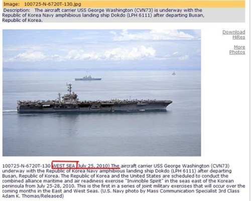 記者于7月28日再次登錄美國(guó)海軍官方網(wǎng)站,發(fā)現(xiàn)之前被標(biāo)為拍攝于“西!(中國(guó)稱(chēng)“黃!)并在7月27日被刪除的照片,已經(jīng)再度被上傳到網(wǎng)站上,而其標(biāo)注的地點(diǎn)已經(jīng)被更正為“日本!。