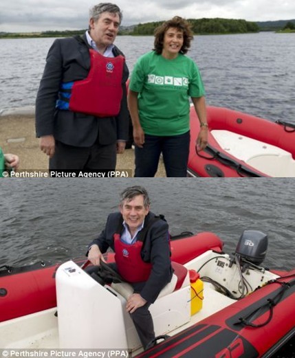 今年5月卸任以后,59歲的布朗行事似乎相當?shù)驼{(diào)。但是近日,布朗又穿著“黑沉沉”、一成不變的西裝與他的兩個孩子在洛赫蓋利附近的公園湖上乘船度假。布朗將救生衣套在西裝、襯衫上,媒體看了直呼:“看在上帝的份上,莎拉(布朗妻子),把布朗拉走,給他一些休閑裝吧”。