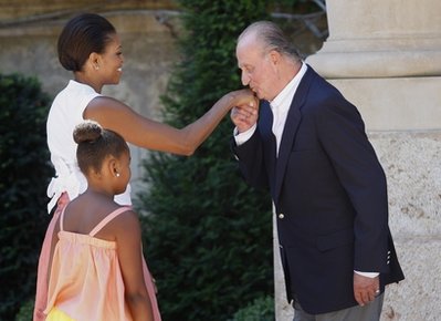 西班牙國王的度假行宮坐落在地中海一座島的懸崖上,非常喜歡駕游艇出海的國王卡洛斯幾乎每年8月都到那里避暑。米歇爾和薩莎與西班牙國王伉儷共進(jìn)午餐。這是美國第一夫人這次西班牙旅游的最后一天。國王卡洛斯準(zhǔn)備了一些在西班牙植栽的植物種子,送給米歇爾,讓她帶回去種在白宮農(nóng)園里。