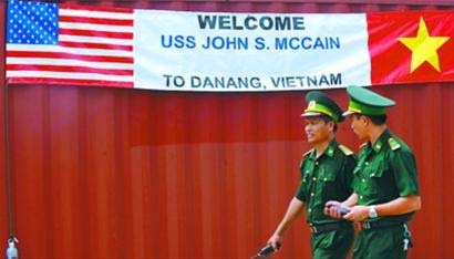 繼美軍核動(dòng)力航母“喬治·華盛頓”號8日抵達(dá)越南中部峴港附近的南海海域后,美軍“約翰·麥凱恩”號驅(qū)逐艦又于10日在越南峴港靠岸,準(zhǔn)備進(jìn)行軍事交流。此時(shí)正值南海問題引發(fā)外交紛爭之際,美越間的頻繁互動(dòng)成為各方關(guān)注的焦點(diǎn)。