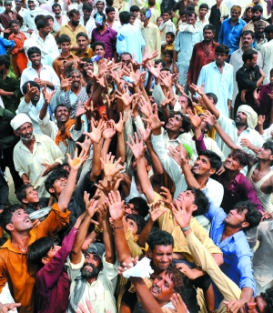 旁遮普地區(qū)議員拉格哈利說,糧食援助人員在給災(zāi)民分發(fā)糧食的時(shí)候,一些失望而饑餓的災(zāi)民甚至襲擊他們。