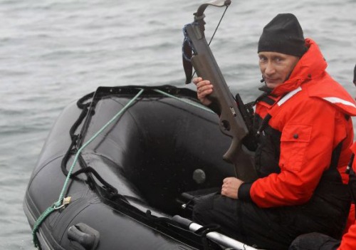 據(jù)俄羅斯《莫斯科時(shí)報(bào)》8月25日?qǐng)?bào)道,俄羅斯總理普京經(jīng)常通過擺弄武器、顯露肌肉展現(xiàn)男子漢氣概。日前他前往勘察加半島附近的奧爾加港參與科學(xué)考察時(shí),乘坐橡皮艇、手持勁弩,再次秀了一把射飛鏢獵捕灰鯨的風(fēng)采。