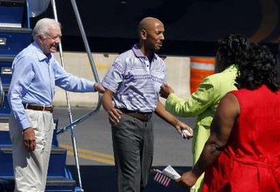 卡特25日抵達(dá)平壤,并與朝鮮最高人民會(huì)議常任委員會(huì)委員長(zhǎng)金永南進(jìn)行了交談。美國(guó)官員稱,卡特此次訪朝是一次“私人性質(zhì)的人道主義式訪問”,只是為了幫助戈麥斯獲釋。