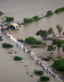 洪水已經(jīng)淹沒了巴基斯坦三分之一的土地,援助物資依然極為匱乏,工程師們經(jīng)常需要面對將洪水引向何方的困難抉擇。毀掉堤壩是控制洪水水位最常用的方式之一,謹(jǐn)慎行事可以減小洪災(zāi)的影響?墒,一些報(bào)道稱,旁遮普省Muzaffargarh地區(qū)的地方官員迫使工程師將洪水引向人口密集區(qū),而避開更小、更富裕的地區(qū)。