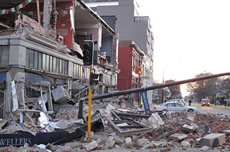 據(jù)新西蘭當?shù)孛襟w報道,整個新西蘭南島都有震感,其中以克賴斯特徹奇最強。照片顯示,克賴斯特徹奇城內(nèi)到處是斷壁殘垣,部分建筑完全損毀。很多驚慌失措的民眾不敢回家,而選擇在外露宿。