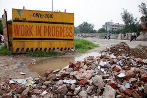 印度當(dāng)?shù)氐耐恋鼗刭?gòu)和環(huán)境影響的訴訟則進(jìn)一步延緩了籌備工作。如今,50億美元的籌備費(fèi)用已是2003年預(yù)算的10倍,卻也并沒有使新德里的面容有所改觀。它更像是一個(gè)布滿碎片、漏雨屋頂、被挖開的人行道和破敗游泳池的巨大工地。