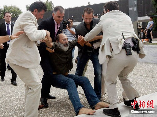中新網(wǎng)9月12日電 據(jù)臺灣“中廣新聞網(wǎng)”11日報道,一名希臘男子因不滿希臘政府的經(jīng)濟緊縮政策,對希臘總理帕潘德里歐丟擲鞋子。