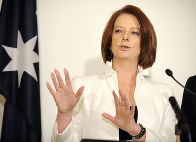 今年6月,時任總理陸克文因推行超額資源稅等政策引起業(yè)界不滿,執(zhí)政黨工黨的支持率下降,6月24日在工黨黨內(nèi)選舉中吉拉德當(dāng)選黨首,取代陸克文出任總理,并宣誓就職。