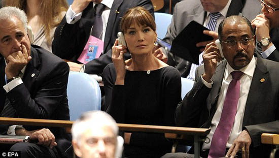 中新網(wǎng)9月21日電 據(jù)香港“星島日報網(wǎng)”報道,法國第一夫人布魯尼因?yàn)榻趦杀拘聲臓幾h性內(nèi)容而成為傳媒焦點(diǎn),她20日陪同總統(tǒng)丈夫薩科齊出席聯(lián)合國千禧發(fā)展目標(biāo)峰會時,以一襲柯德莉夏萍裝亮相,實(shí)時吸引記者鏡頭。但最引人入勝的是,她在聆聽丈夫發(fā)言時,竟拿起傳譯耳機(jī),難道她聽不懂丈夫的語言?