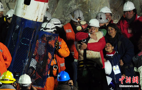 智利圣何塞銅礦8月5日發(fā)生礦難,33名礦工在井下約700米處被困超過(guò)2個(gè)月。經(jīng)過(guò)設(shè)計(jì)方案、挖掘隧道等一系列準(zhǔn)備工作,最后階段的救援于當(dāng)?shù)貢r(shí)間12日晚展開(kāi)。智利總統(tǒng)以及多名智利官員到場(chǎng)迎接礦工出井。