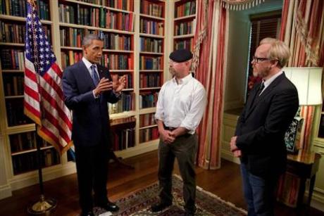 中新網(wǎng)10月19日電 據(jù)外電報(bào)道,美國總統(tǒng)奧巴馬日前出現(xiàn)在著名的電視系列片“流言終結(jié)者”中。白宮稱,總統(tǒng)此舉旨在向公眾強(qiáng)調(diào)科學(xué)、數(shù)學(xué)和工程學(xué)的重要性。