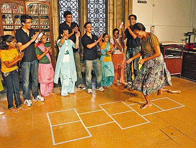 中新網(wǎng)11月7日電 據(jù)美國媒體報道,美國第一夫人米歇爾隨奧巴馬訪問印度期間,在孟買大學(xué)與33名貧困兒童一起玩耍,不僅又唱又跳,還玩起了“跳房子”游戲。