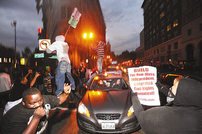 中新網(wǎng)11月7日電 據(jù)香港《文匯報》報道,美國加州奧克蘭一名白人警員去年元旦射殺一名手無寸鐵的黑人男子,隨后引發(fā)種族騷亂。涉案警員前日被判囚2年,死者家屬不滿刑罰過輕,約500人到市府外示威,高呼“沒公義,沒和平”,并與警察沖突,期間有人打破窗戶和跳上汽車,有警員更一度被搶去佩槍。警方加強戒備,防止再次爆發(fā)騷亂,沖突中最少有152人被捕。